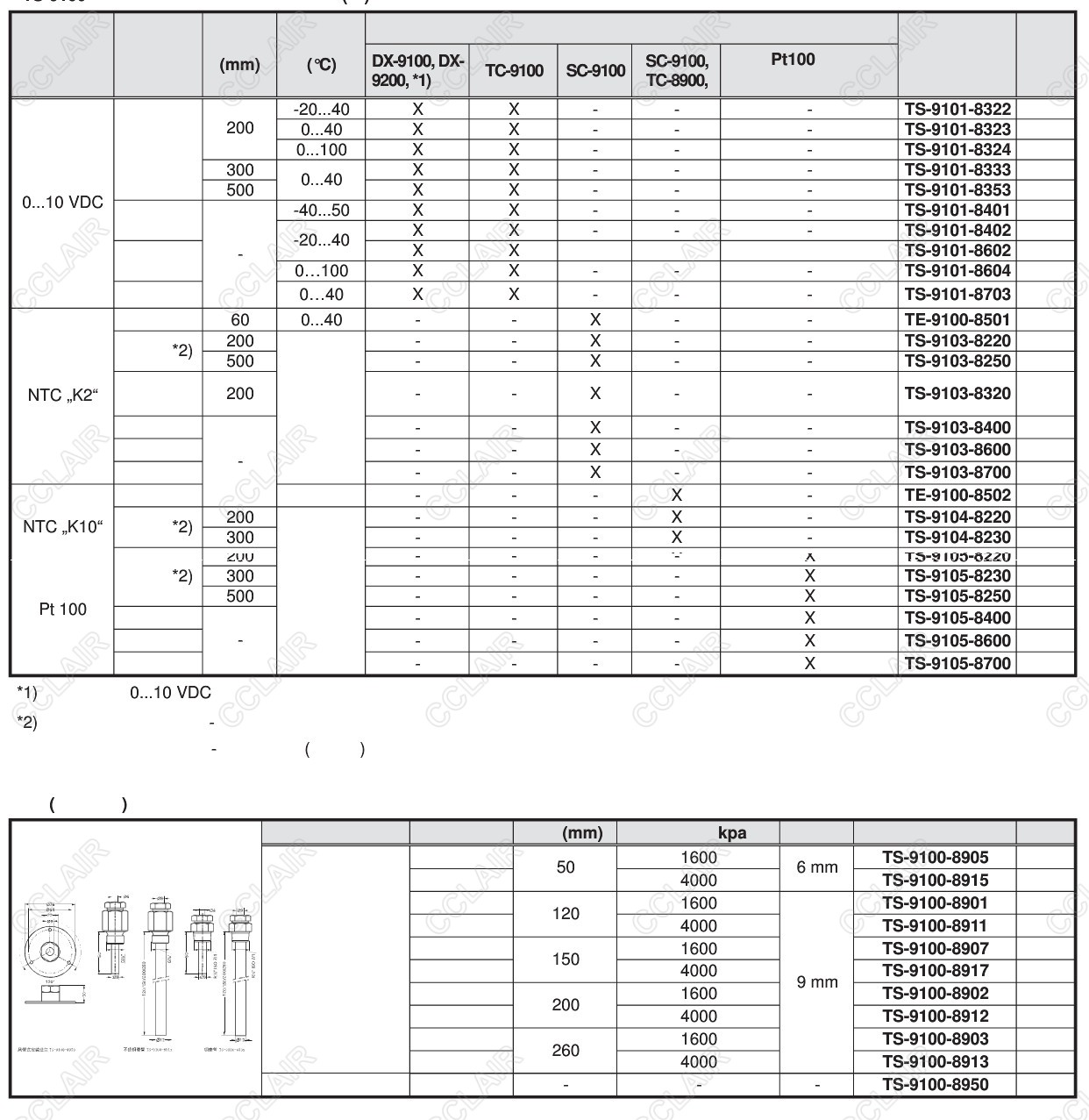 詳細(xì)信息 TS-9101-8101,TS-9101-8103,TS-9101-8104,TS-9101-8212,TS-9100/TE-9100,電子式溫度傳感器及變松