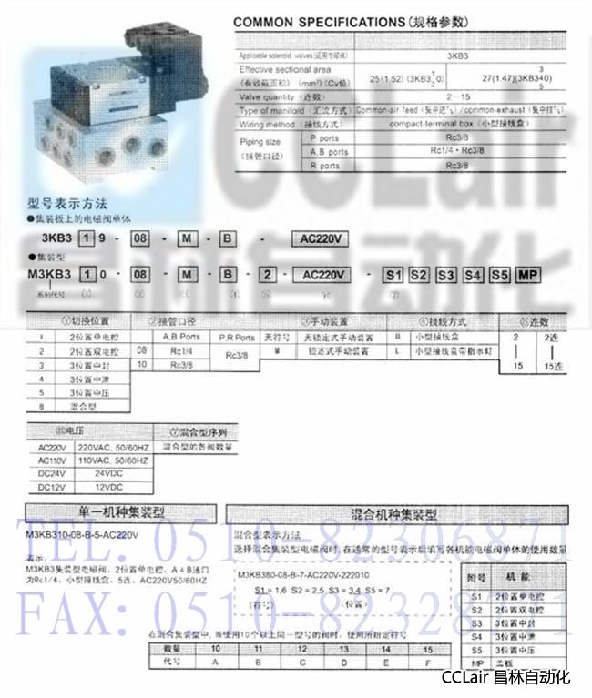 詳細信息 3KB329-08-M-B,3KB329-08-M-L,3KB329-08-B,3KB329-08-L,先導(dǎo)型五通集裝型電磁閥,