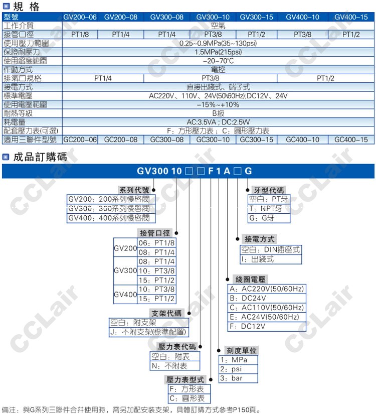 GV200-06-N-F1-A-G,GV200-08,GV300-10-N-F1-A-G,GV300-08,GV300-15,GV400-10,GV400-15,慢啟閥