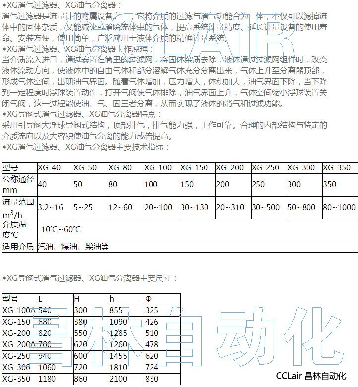 XG-40,XG-50,XG-80,XG-100,XG-150,XG-200,XG-250,XG-300,消氣過濾器