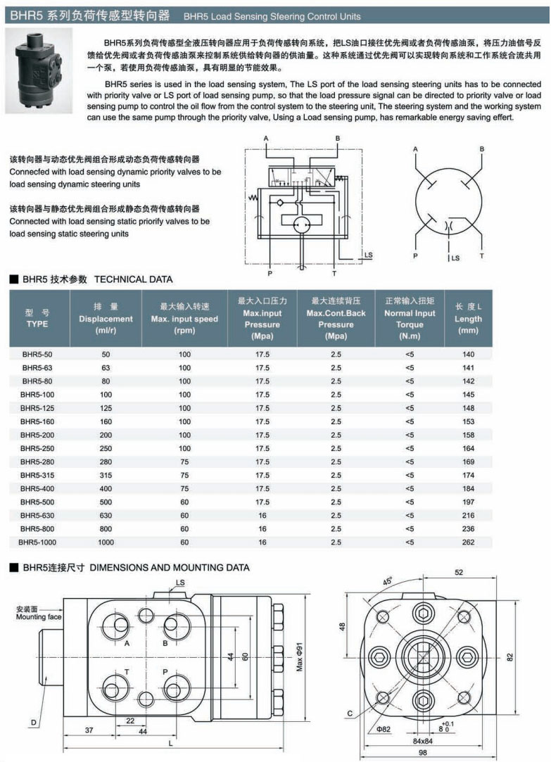 BHR5-50,BHR5-63,BHR5-80,BHR5-100,BHR5-125,BHR5-160,BHR5-200,BHR5-250,BHR5-280,負(fù)荷傳感型轉(zhuǎn)向器
