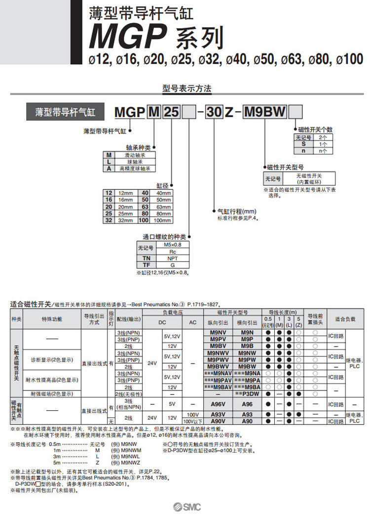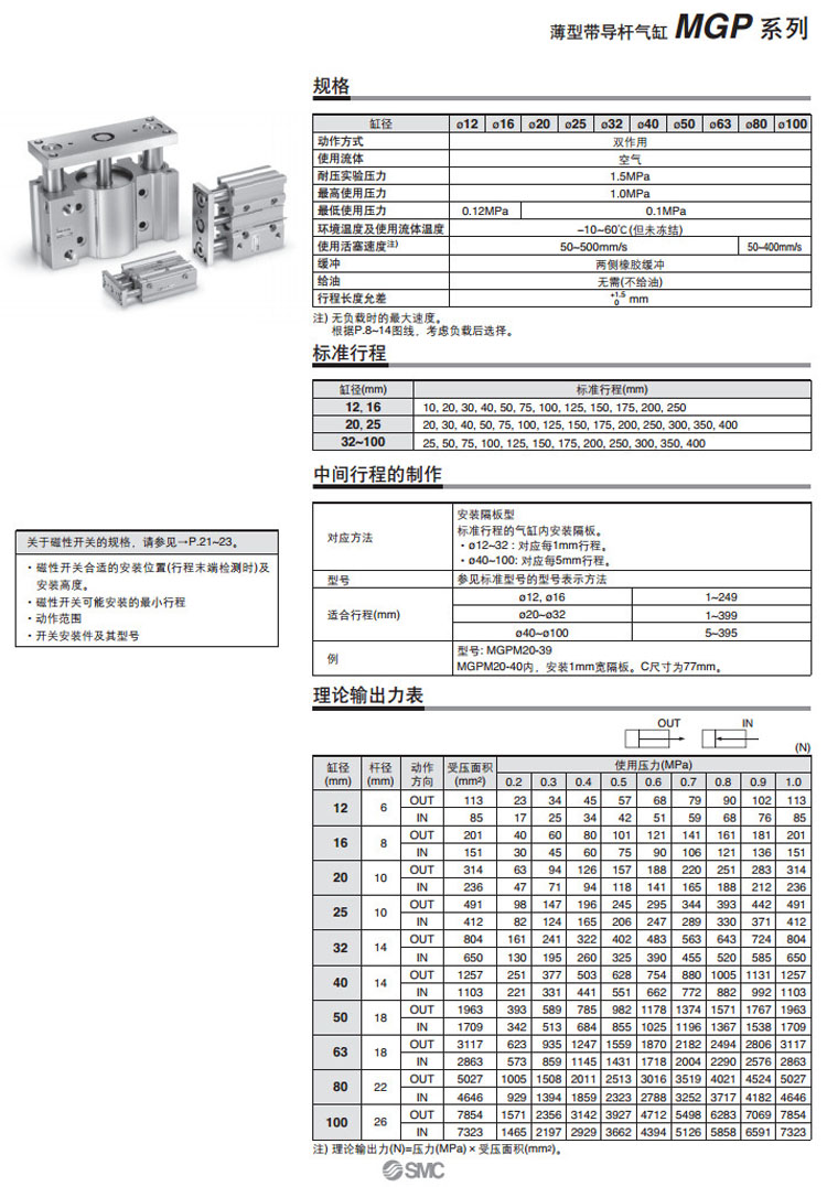 MGPM12-10,MGPL12-10,MGPA12-10,MGPM12-20,MGPL12-20,MGPA12-20,SMC薄型帶導桿氣缸