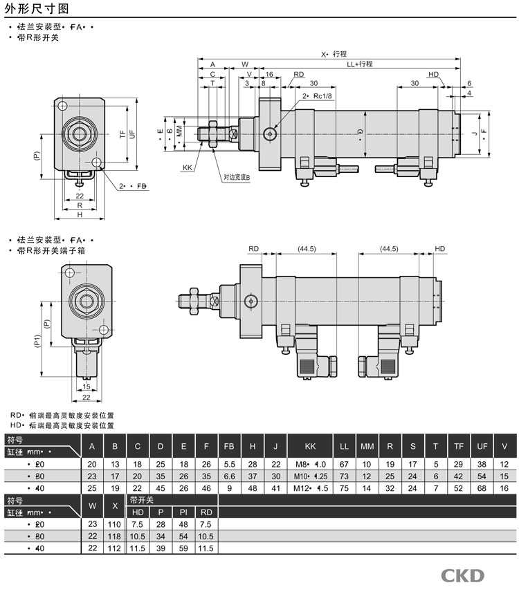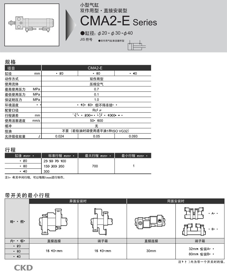 CMA2-E-LS-20-25,CMA2-E-FA-20-250,CMA2-E-FA-20-300,CMA2-E-LS-20-50,CMA2-E-LS-20-75,CKD小型氣缸