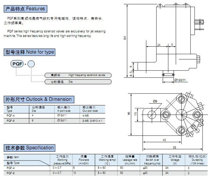 PQF系列高頻閥是噴氣織機(jī)專用電磁閥,該閥特點:壽命長,工作頻率高。