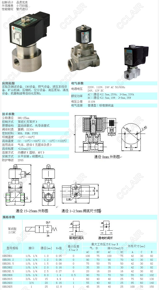 OK62H01,OK62H1.2,OK62H1.5,OK62H02,OK62H2.5,OK62H15,OK62H20,OK62H25,OK62H,精巧高壓電磁閥