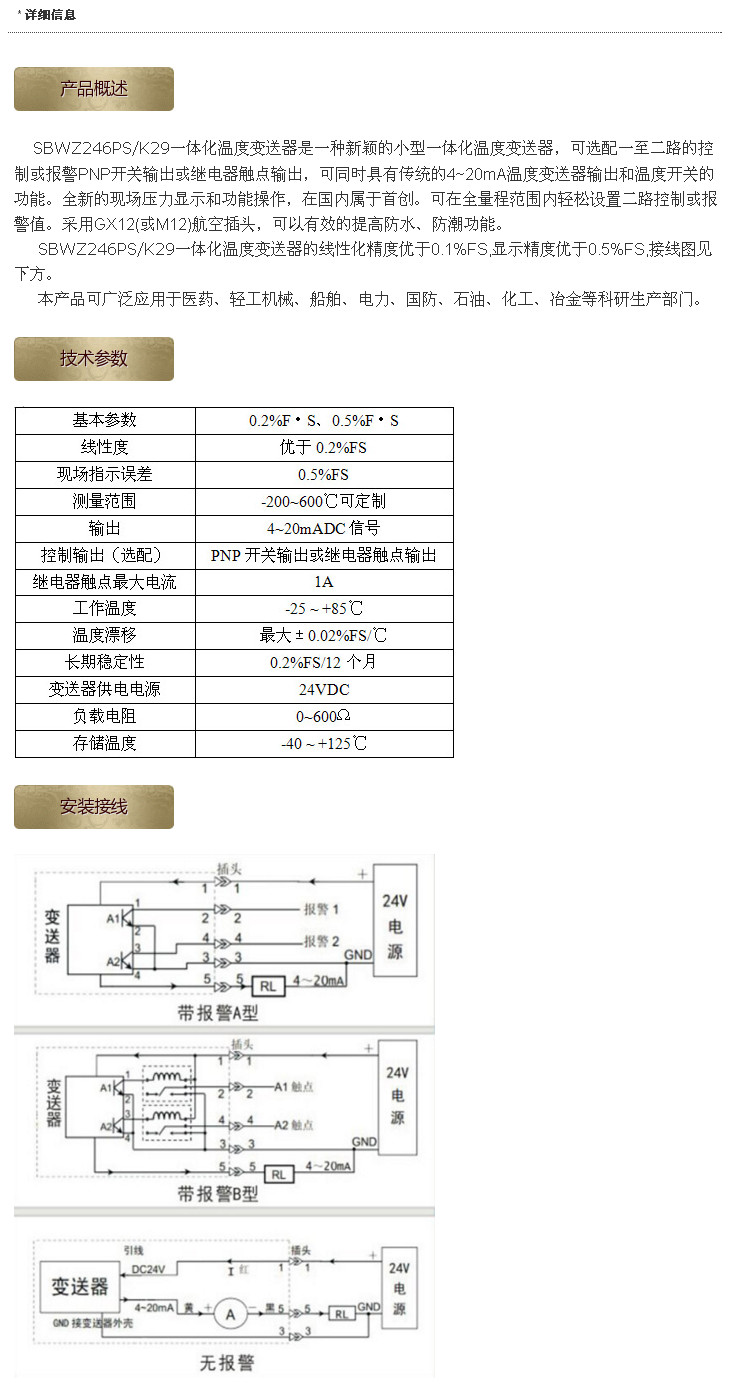 SBWZ246PS/K29,一體化溫度變送器