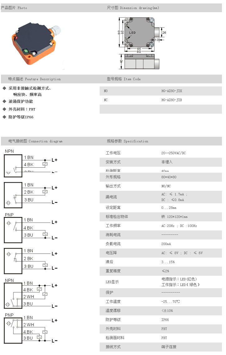 組合型接近傳感器 HG-AZ80-JZK,HG-AZ80-JZB,