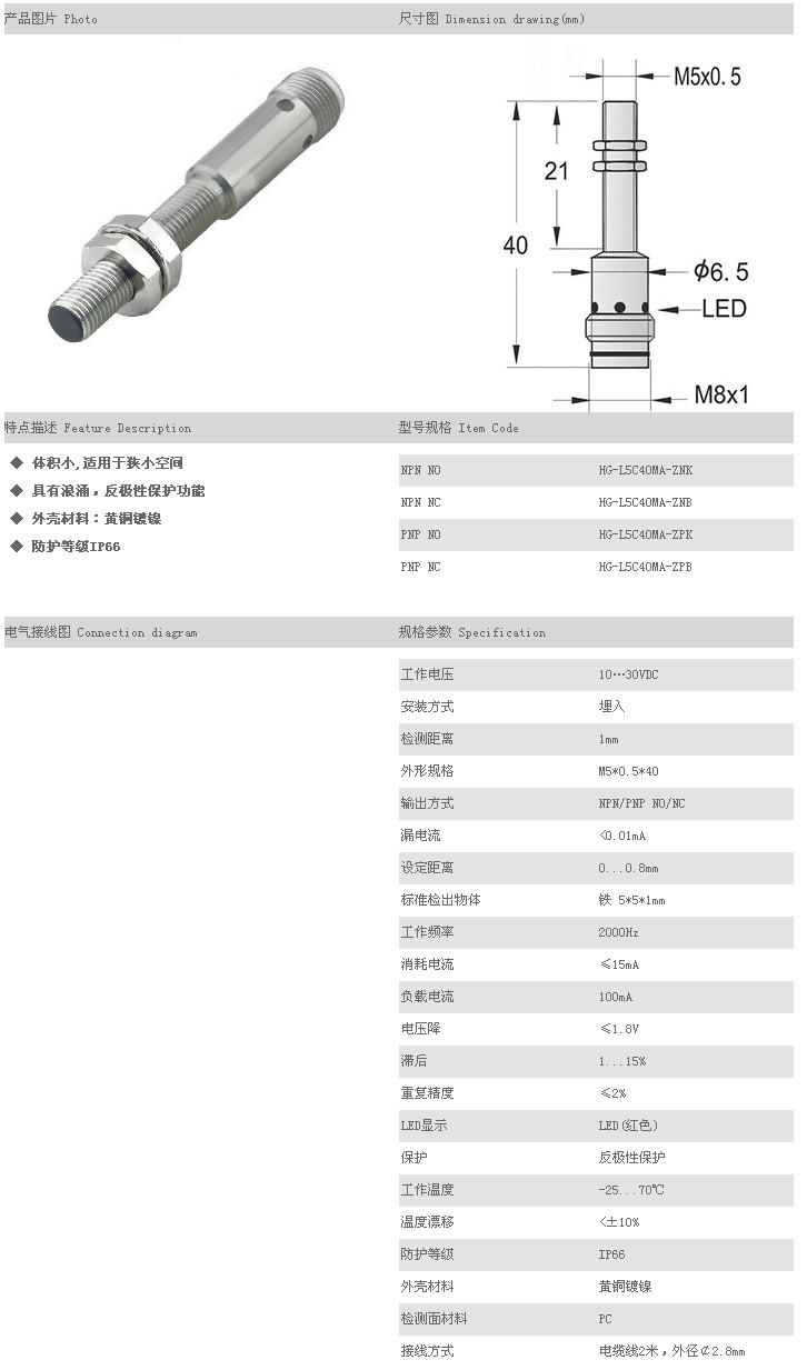 超小型接近開關(guān) HG-L5C40MA-ZNK,HG-L5C40MA-ZNB,HG-L5C40MA-ZPK,HG-L5C40MA-ZPB,