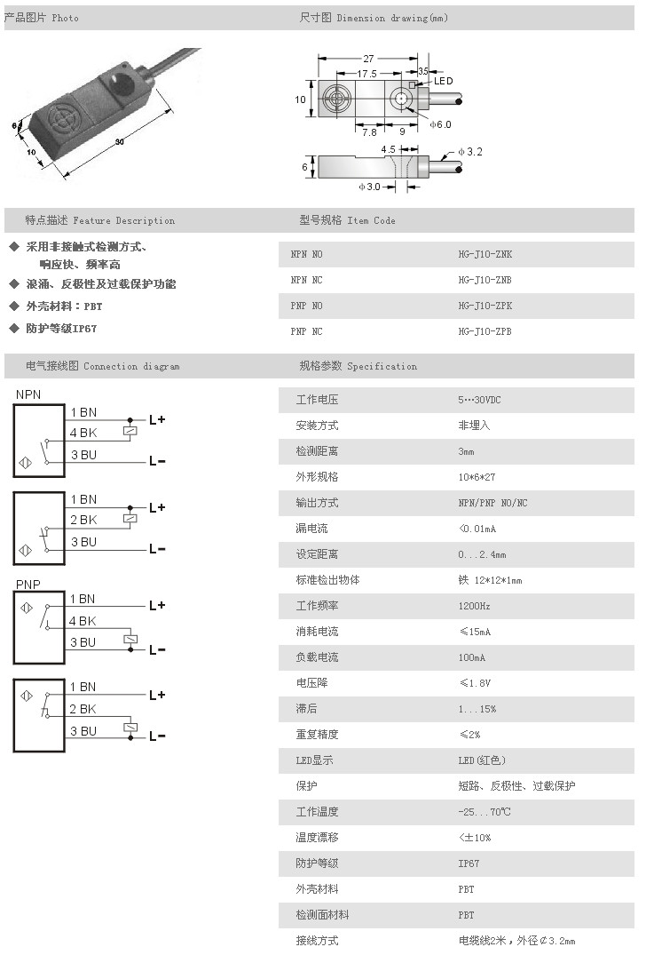 超小型接近開關 HG-J10-ZNK,HG-J10-ZNB,HG-J10-ZPK,HG-J10-ZPB,
