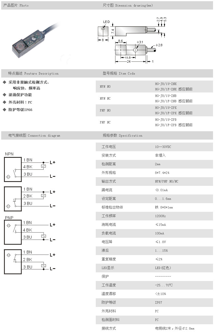 超小型接近開(kāi)關(guān) HG-J8/1U-ZNK,HG-J8/1F-ZNK,HG-J8/1U-ZNB,HG-J8/1F-ZNB,HG-J8/1U-ZPK,HG-J8/1F-ZPK,HG-J8/1U-ZPB,HG-J8/1F-ZPB,