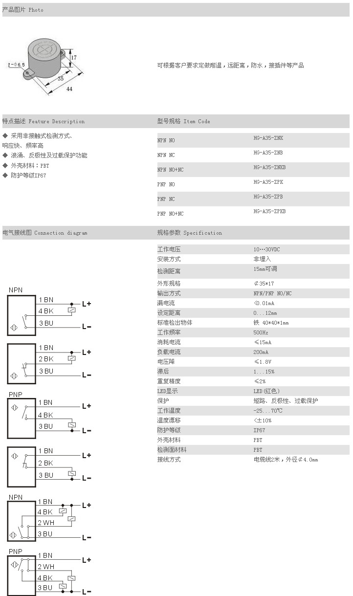 餅型接近傳感器 HG-A35-ZNK,HG-A35-ZNB,HG-A35-ZNKB,HG-A35-ZPK,HG-A35-ZPB,HG-A35-ZPKB,