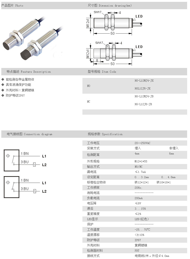 遠(yuǎn)距離型接近開(kāi)關(guān) HG-L12MJ4-JK,HGL12J6-JK,HG-L12MJ4-JB,HG-L12J6-JB,