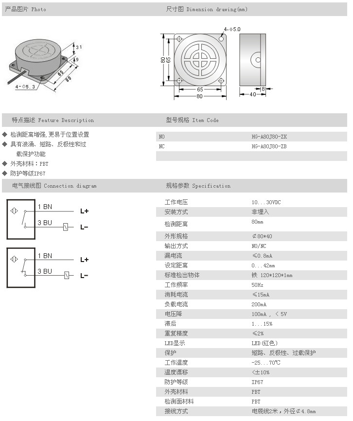遠距離型接近開關(guān) HG-A80J80-ZK,HG-A80J80-ZB,
