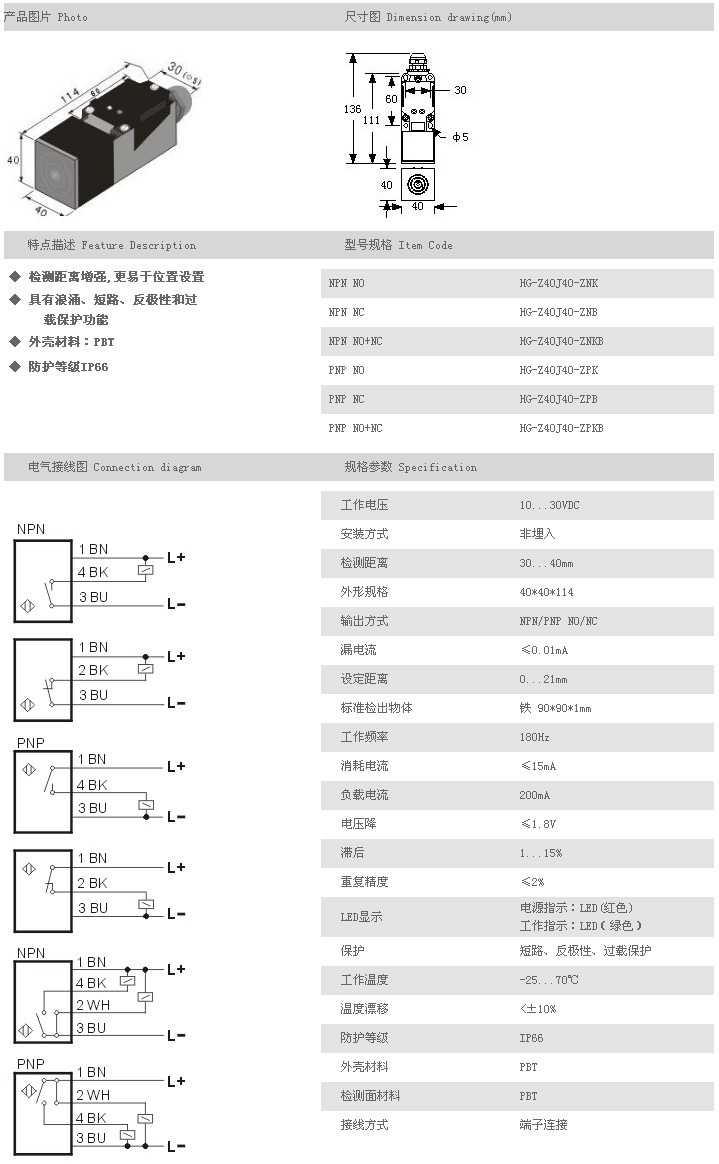 遠距離型接近開關 HG-Z40J40-ZNK,HG-Z40J40-ZNB,HG-Z40J40-ZNKB,HG-Z40J40-ZPK,HG-Z40J40-ZPB,HG-Z40J40-ZPKB |