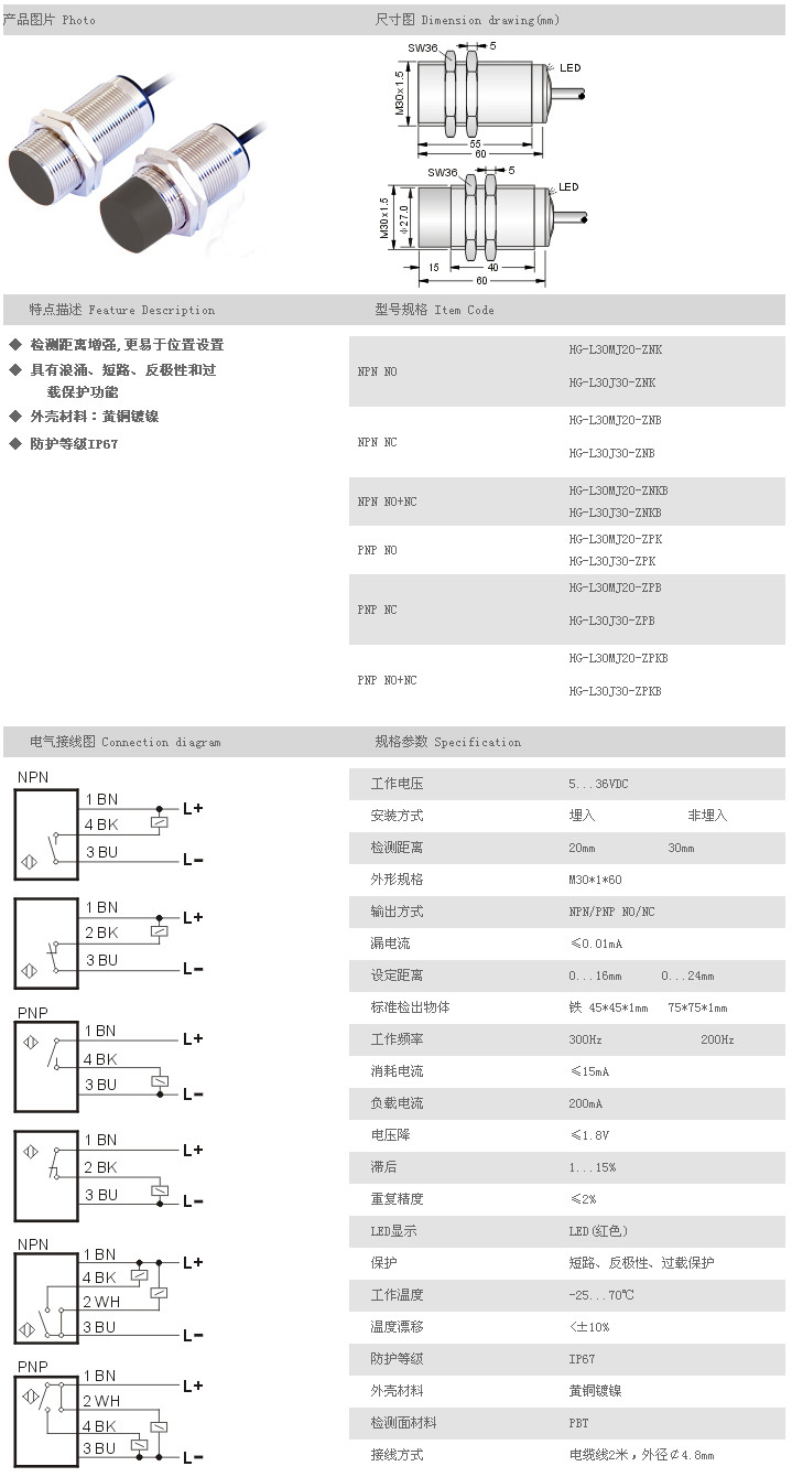 遠距離型接近開關(guān) HG-L30MJ20-ZNK,HG-L30J30-ZNK,HG-L30MJ20-ZNB,HG-L30J30-ZNB,HG-L30MJ20-ZNKB,HG-L30J30-ZNKB,HG-L30MJ20-ZPK,HG-L30J30-ZPK,HG-L30MJ20-ZPB,HG-L30J30-ZPB,HG-L30MJ20-ZPKB,HG-L30J30-ZPKB,