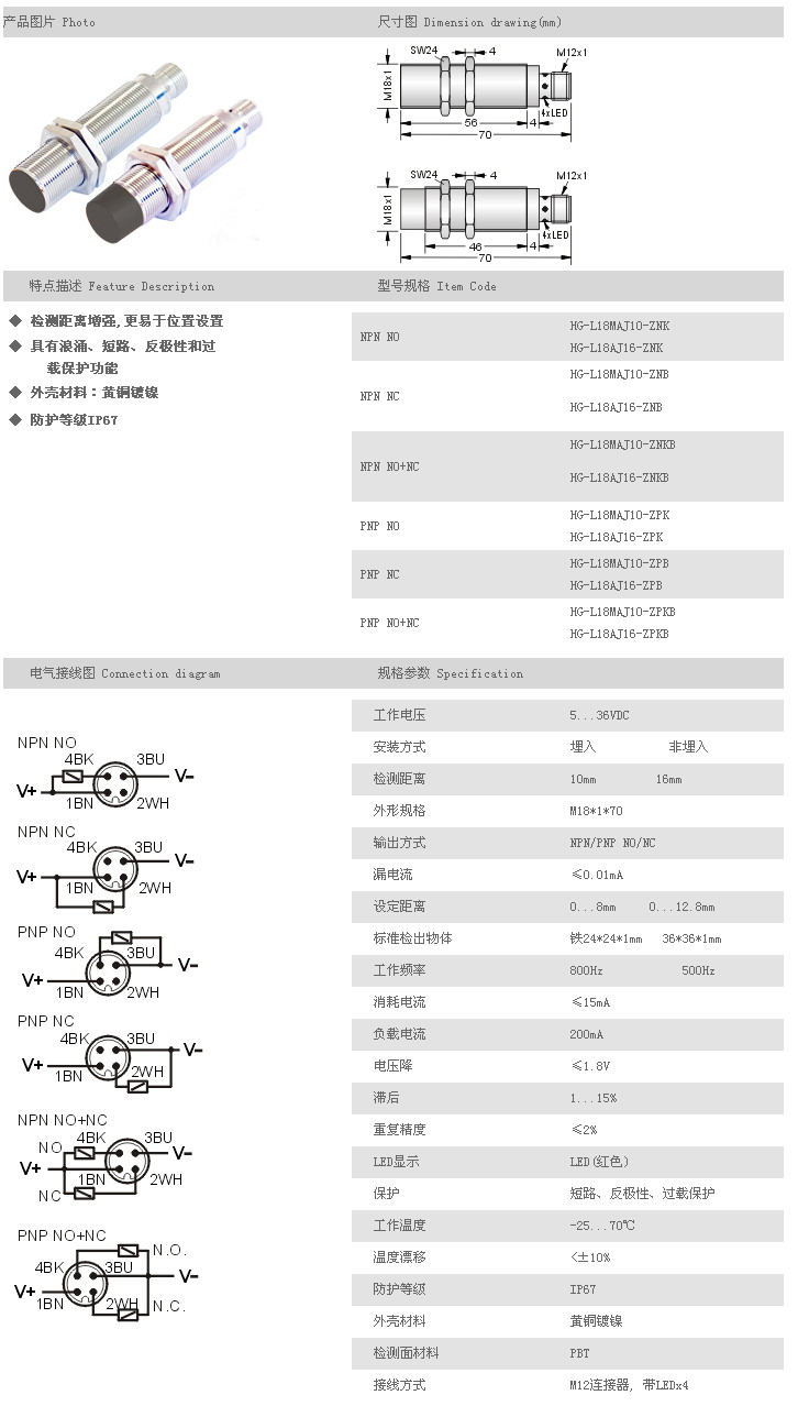 遠(yuǎn)距離型接近開關(guān) HG-L18MAJ10-ZNK,HG-L18AJ16-ZNK,HG-L18MAJ10-ZNB,HG-L18AJ16-ZNB, |