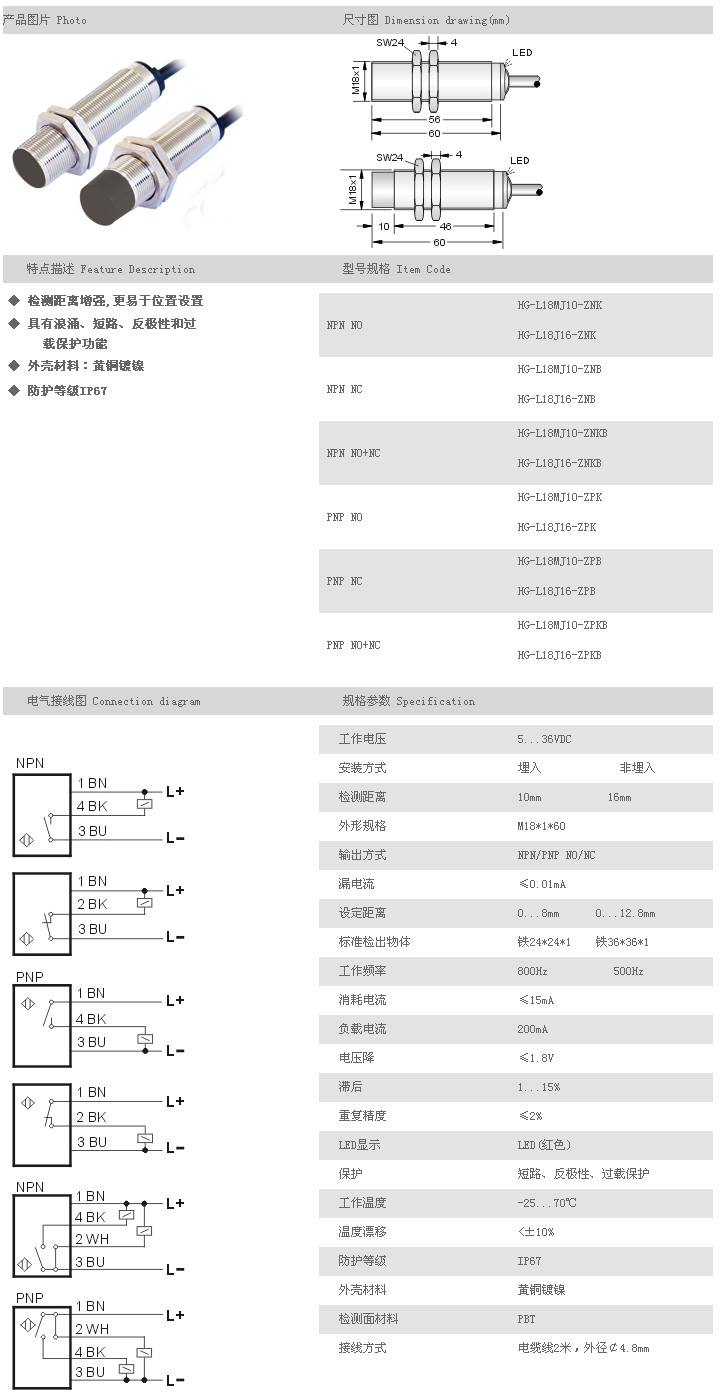 遠距離型接近開關 HG-L18MJ10-ZNK,HG-L18J16-ZNK,HG-L18MJ10-ZNB,HG-L18J16-ZNB,HG-L18MJ10-ZNKB,HG-L18J16-ZNKB,HG-L18MJ10-ZPK,HG-L18J16-ZPK,HG-L18MJ10-ZPB,HG-L18J16-ZPB,HG-L18MJ10-ZPKB,HG-L18J16-ZPKB,