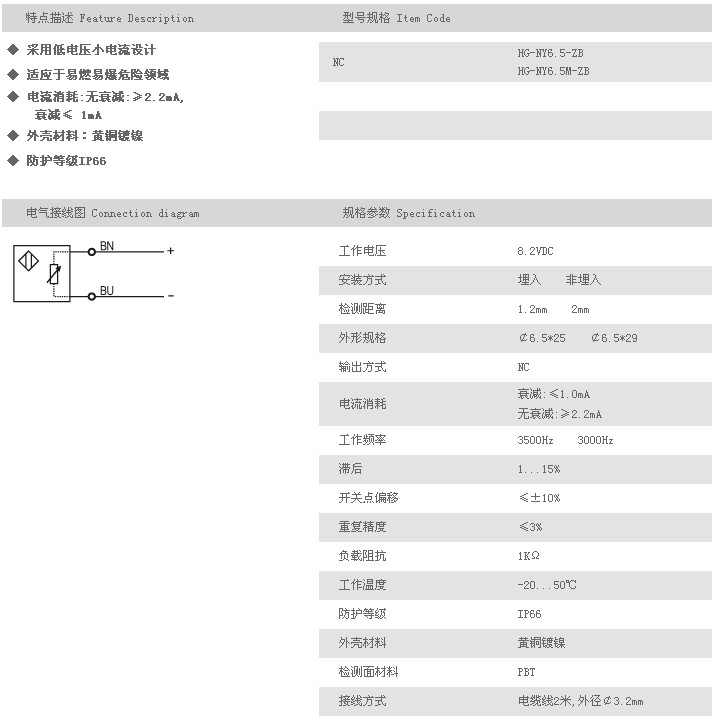Y6.5防爆型接近開關 HG-NY6.5-ZB,HG-NY6.5M-ZB,