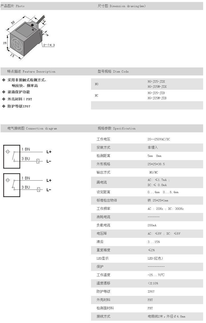 方型接近開(kāi)關(guān) HG-J25-JZK,HG-J25M-JZK,HG-J25-JZB,HG-J25M-JZB,