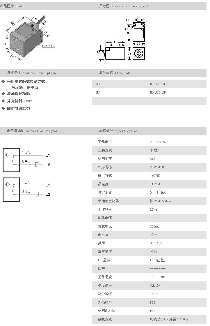方型接近開關(guān) HG-J25-JK,HG-J25-JB,