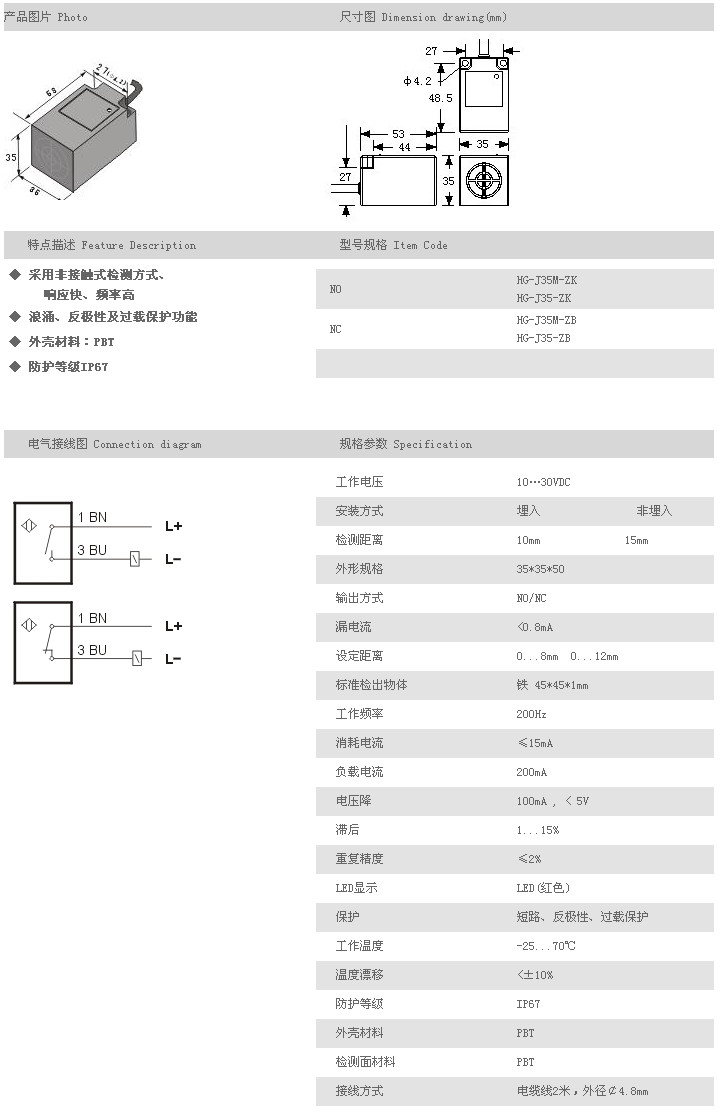 方型接近開關(guān) HG-J35M-ZK,HG-J35-ZK,HG-J35M-ZB,HG-J35-ZB,