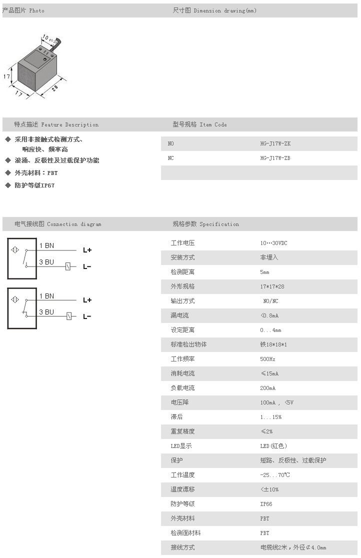方型接近開關(guān) HG-J17W-ZK,HG-J17W-ZB,