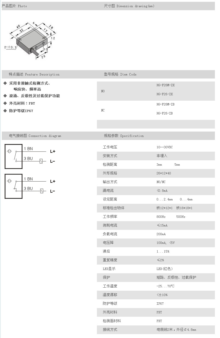 方型接近開(kāi)關(guān) HG-F26M-ZK,HG-F26-ZK,HG-F26M-ZB,HG-F26-ZB,