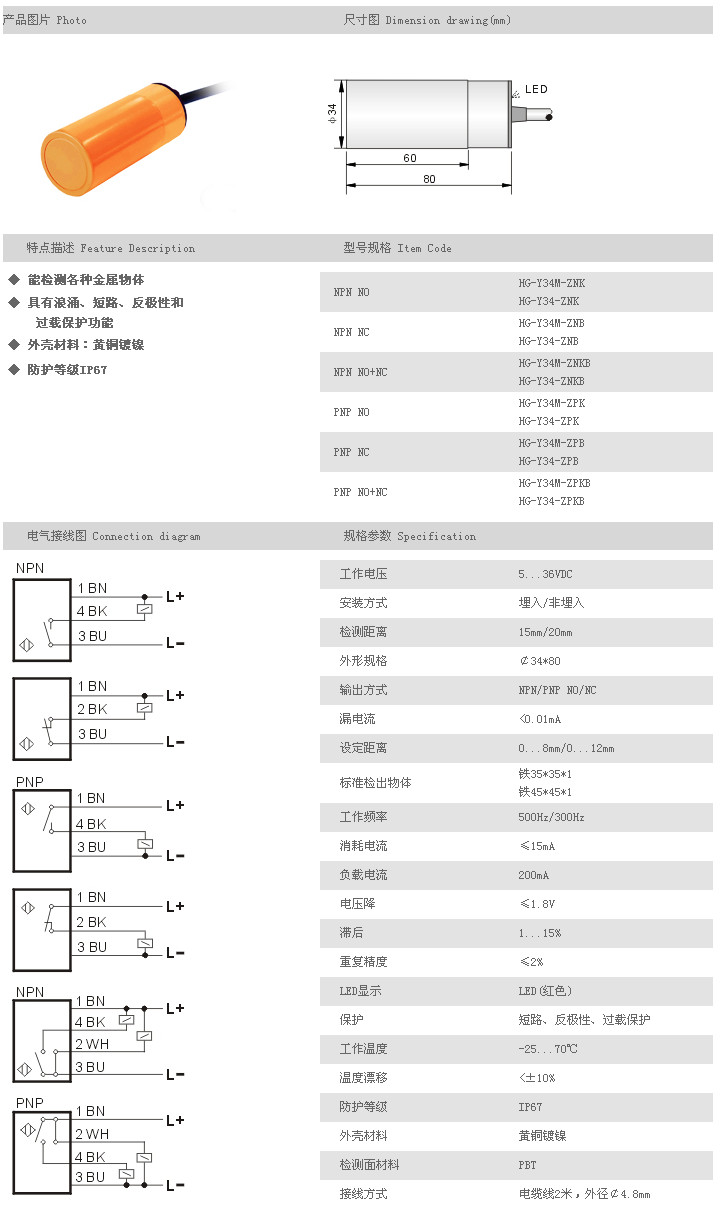 Y34圓柱型接近開關(guān) HG-Y34M-ZNK,HG-Y34-ZNK,HG-Y34M-ZNB,HG-Y34-ZNB,HG-Y34M-ZNKB,