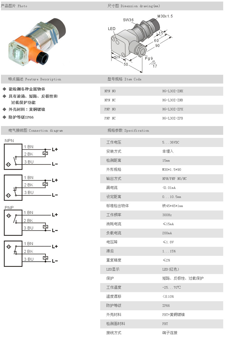 L30Z圓柱型接近開關(guān) HG-L30Z-ZNK,HG-L30Z-ZNB,HG-L30Z-ZPK,HG-L30Z-ZPB,