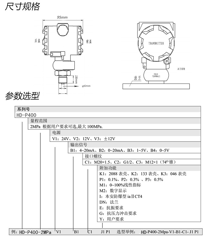 HD-P400-2MPa-V1-B1-C1-J1P1,HD-P400,壓力變送器