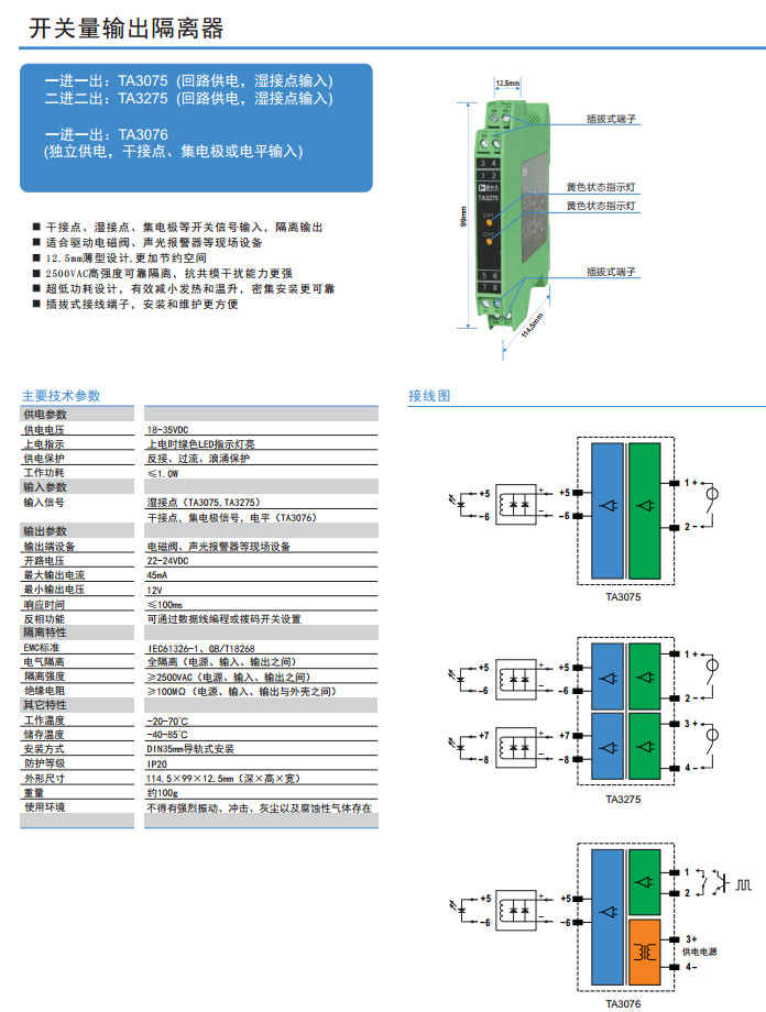 TA3075,TA3275,TA3076,開關(guān)量輸出隔離器