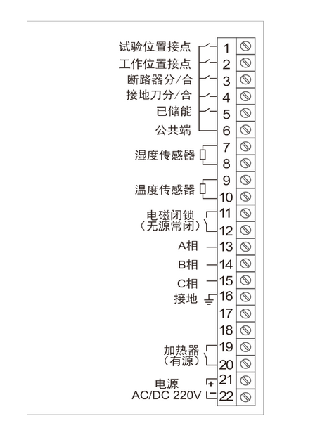 接地閘刀位置指示(無(wú)源觸點(diǎn)輸入):工作位置觸點(diǎn)閉合時(shí),紅色模擬條亮,觸點(diǎn)斷開(kāi),綠色模擬條亮,表示接地?cái)嚅_(kāi);