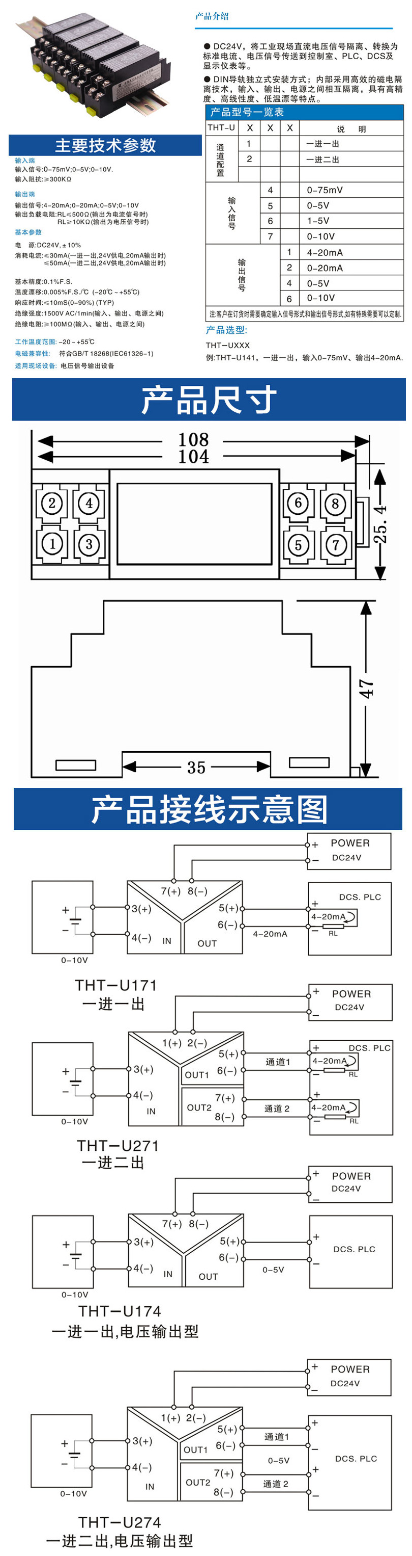THT-U141,THT-U162,THT-U174,THT-U246,THT-U254,THT-U266,THT-U276,THT-U,信號(hào)隔離器