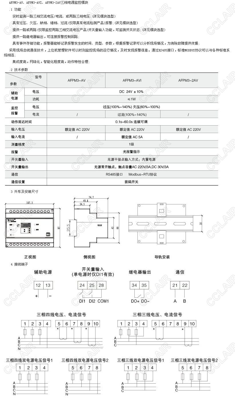 AFPM3-AV,AFPM3-AVI,AFPM3-2AV,三相電源監(jiān)控模塊