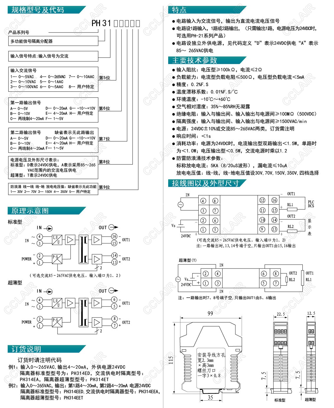 PPH-311,PH-312,PH-313,PH-315,PH-316,H-314ED,PH-314EA,PH-314ET,PH-31,交流型信號隔離器