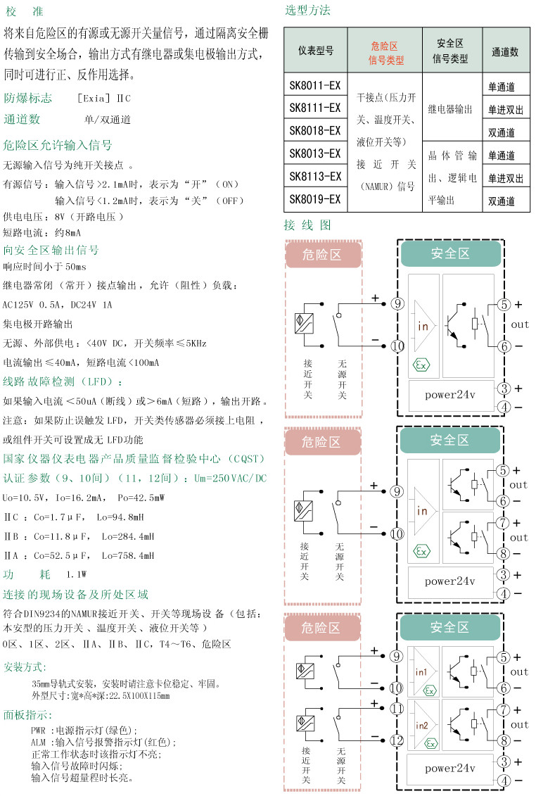 SK8011-EX,SK8111-EX,SK8018-EX,SK8013-EX,SK8113-EX,SK8019-EX,SK,開關(guān)量入檢測端隔離安全柵