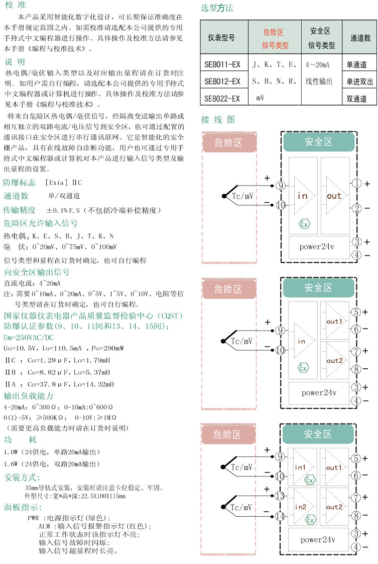 SE8011-EX,SE8012-EX,SE8022-EX,SE,熱電偶入檢測端隔離安全柵