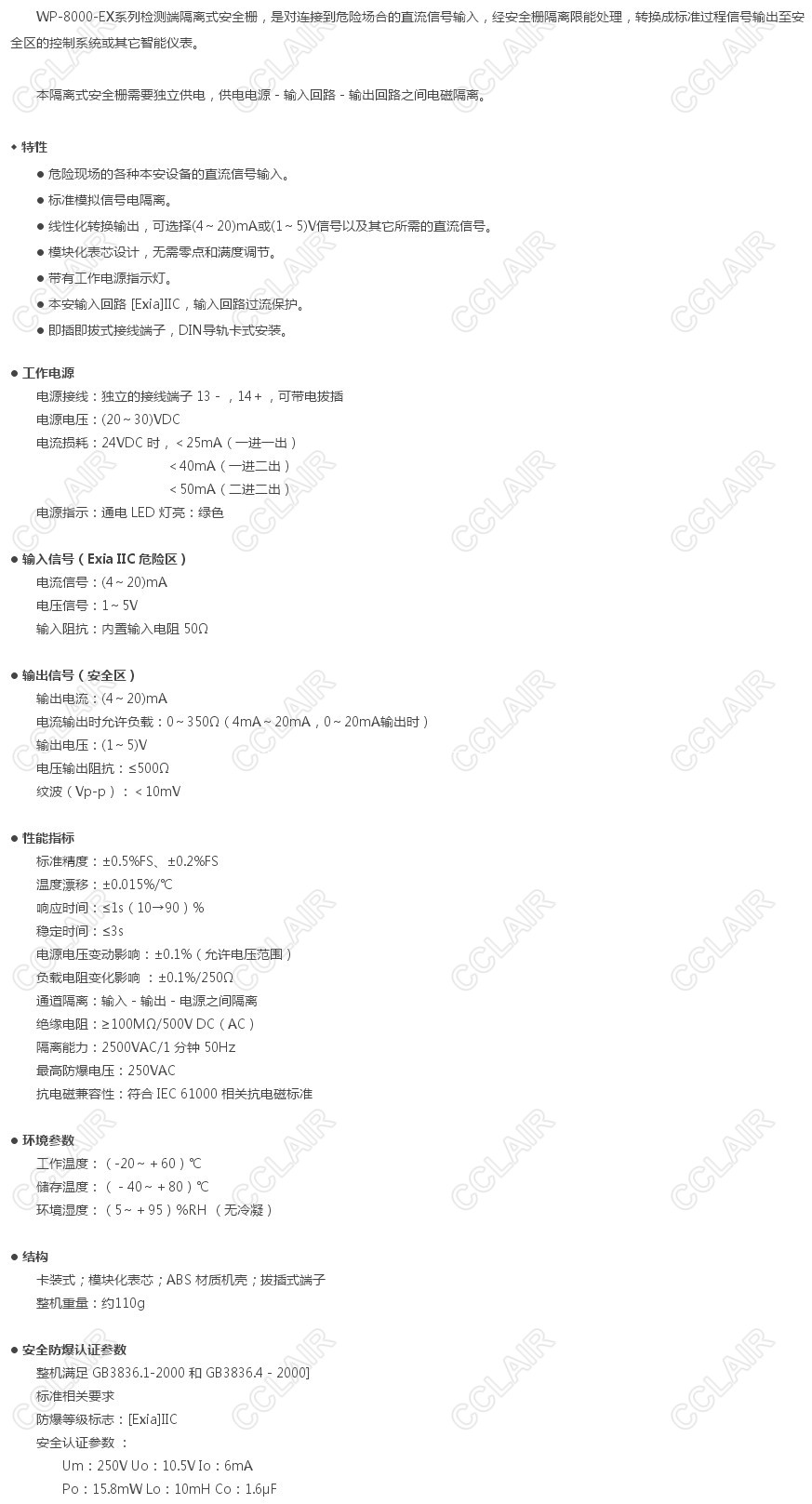 WP-8068-EX,WP-8069-EX,WP-8037-EX,檢測端隔離式安全柵