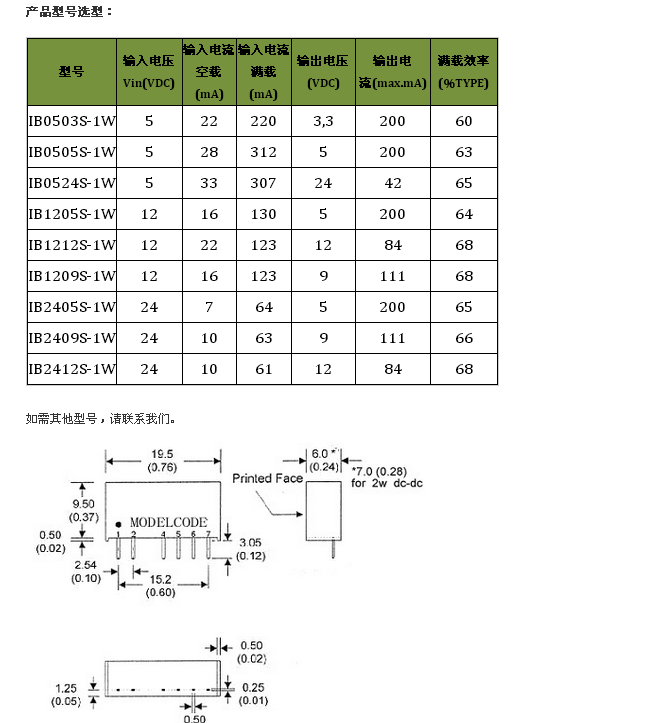 IB0503S-1W,IB0505S-1W,IB0524S-1W,IB1205S-1W,IB1212S-1W,電源模塊