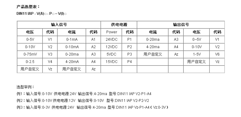 DIN11 IAP V2-P1-A4,DIN11 IAP V2-P2-V2,:DIN11 IAP Vz-P1-A4(Vz:0-3V),電流信號(hào)信號(hào)隔離器.