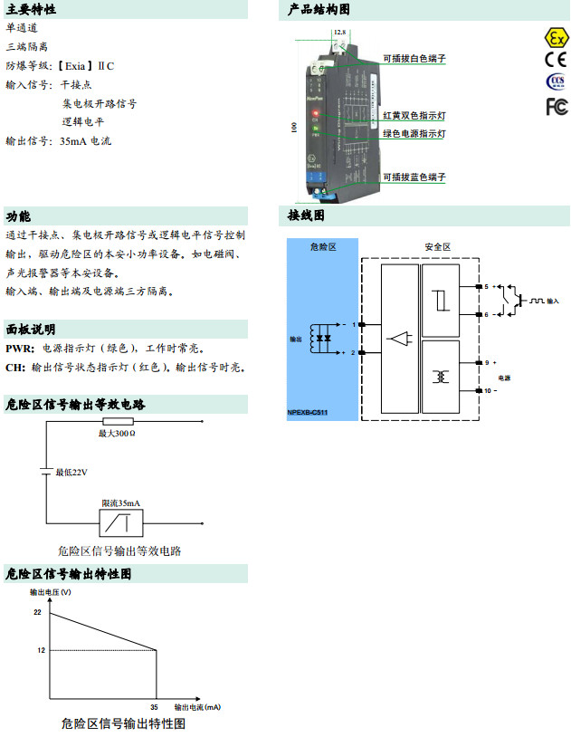 NPEXB-C511,操作端隔離式安全柵