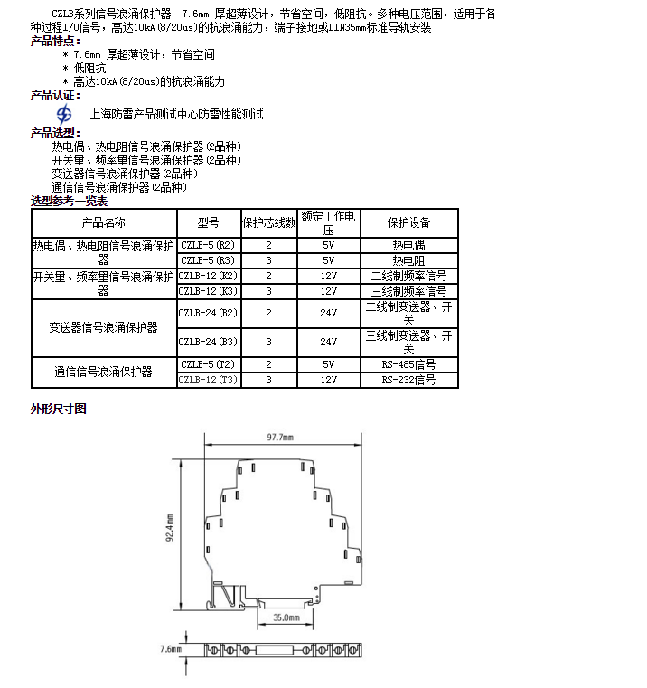 CZLB-5(R2),CZLB-5(R3),CZLB-12(K2),CZLB-12(K3),信號浪涌保護器
