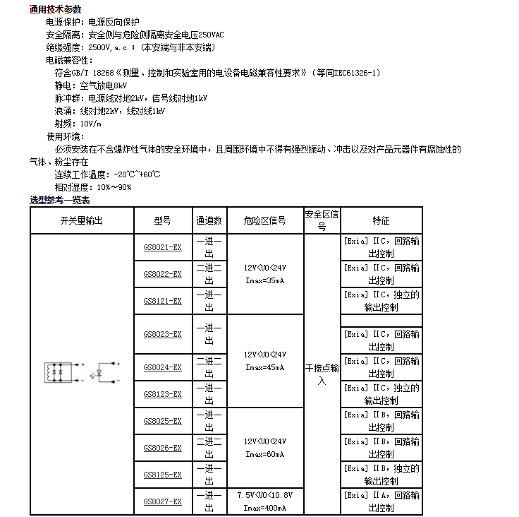 GS8021-EX,GS8022-EX,GS8121-EX,GS8023-EX,GS8024-EX,開(kāi)關(guān)量輸出隔離式安全柵