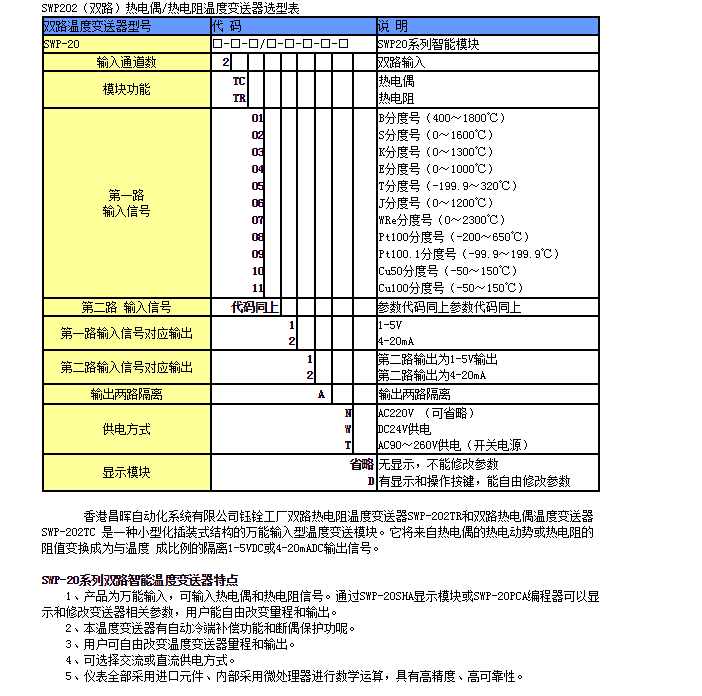 SWP-202TC-01,SWP-202TC-10,SWP-202TR-06,SWP-202TR-10,熱電偶/熱電阻溫度變送器SWP-202TC-02,SWP-202TC-03,SWP-202TC-04,SWP-202TC-05,SWP-202TC-06
