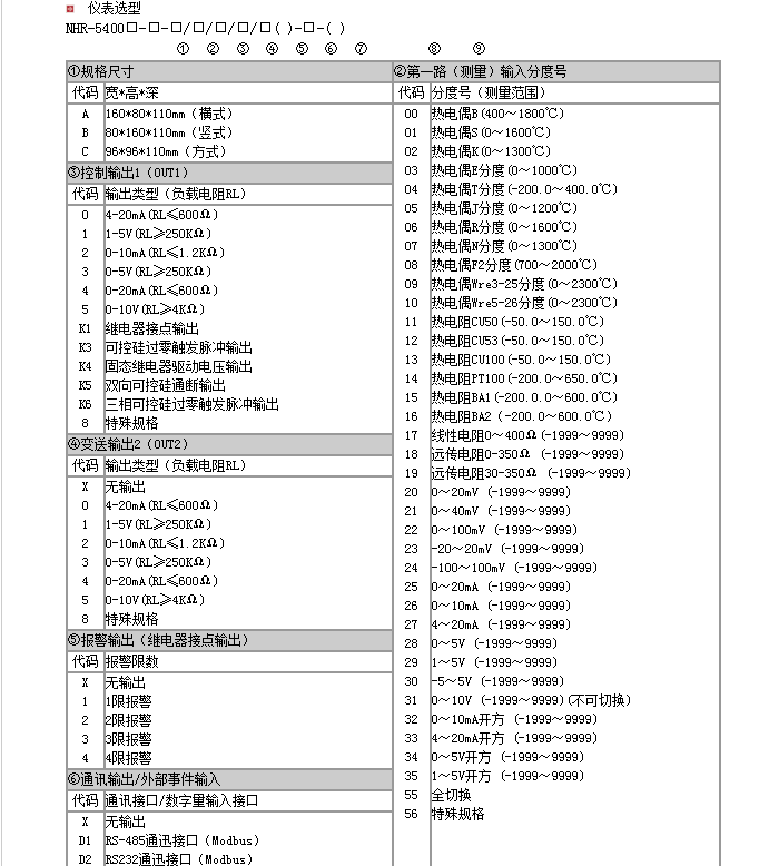 型號: NHR-5400A-55-0/0/2/X/1P(24)-A,NHR-5400C-27-K3/X/X/D1/X-A,自整定調(diào)節(jié)器