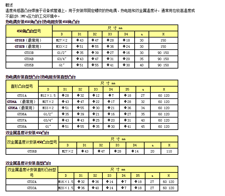 GT01B,GT01A,GT08A,GT02B,GT04A,GT06B,溫度傳感器凸臺