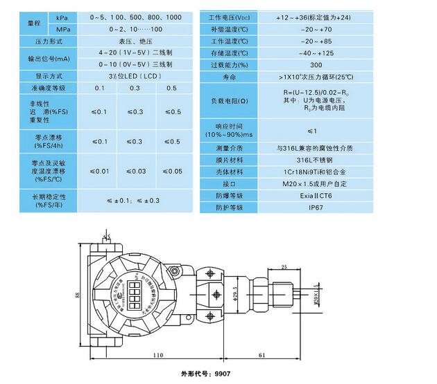 采用高穩(wěn)定性,高準(zhǔn)確度隔離金屬膜片的力敏芯片,經(jīng)內(nèi)置存儲器存取傳感器的環(huán)境溫度、壓力及輸入/輸出特性修正參數(shù)、再經(jīng)CPU微處理器運算,進行溫度自動補償,非線性校正、信號放大、V/I轉(zhuǎn)換與A/D轉(zhuǎn)換,直接用3又1/2LED顯示壓力值并輸出4-20mA或0-10mA的標(biāo)準(zhǔn)信號。