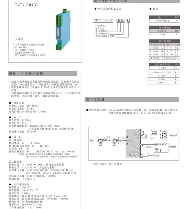 TMTY6043T ,TMTY6043T -PA,1入2出 電流信號(hào)輸入配電隔離器