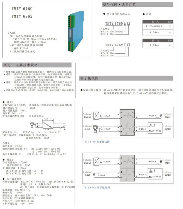 信號(hào)輸入/輸出雙通道二線制隔離器:TMTY6760 2入2出;TMTY6762 2入2出