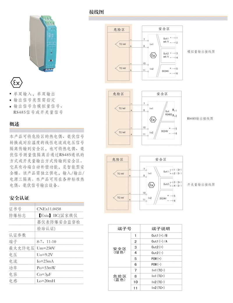 輸入類型:標(biāo)準(zhǔn)熱電偶輸入輸出類型:模擬量輸出,RS485信號(hào)輸出,開關(guān)量輸出
